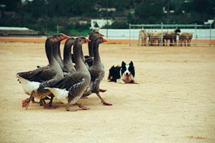 Mantenerse a la expectativa al lado del dueño marchando a su lado y atento y en más de una jornada.